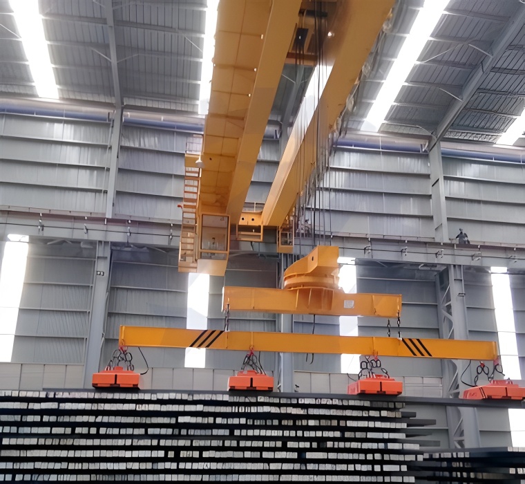 主要用于鋼廠、船廠、港口、貨場等室內(nèi)或露天的固定跨間,裝卸及搬運(yùn)各種超長的型材物料等